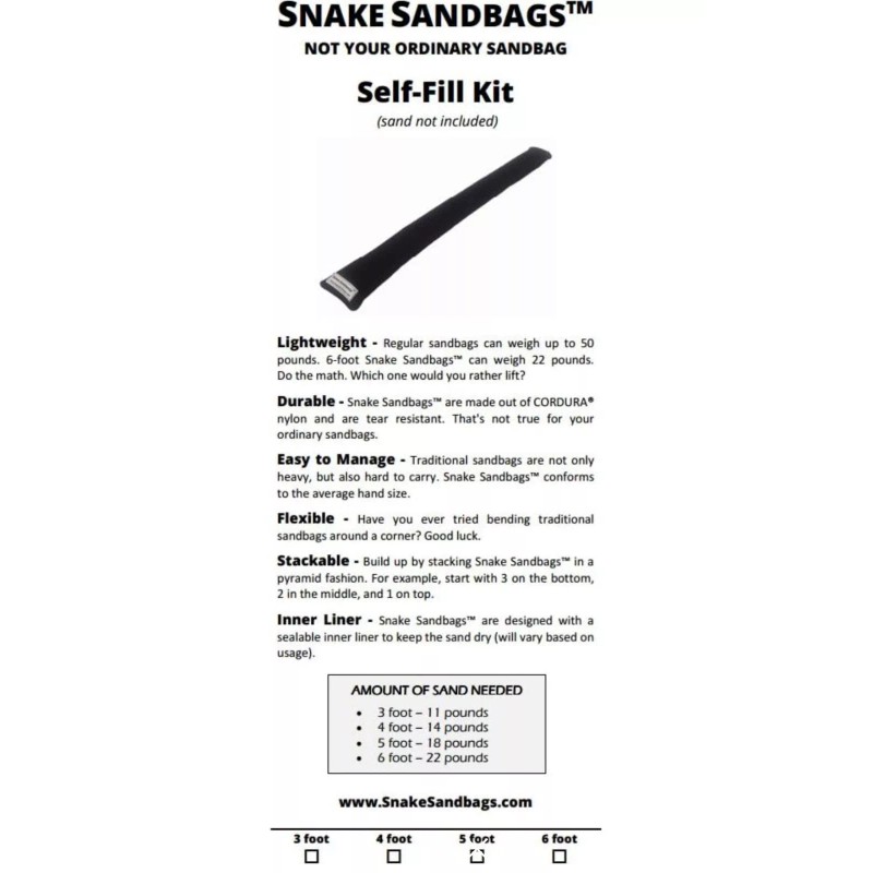 - MPN: 5 ft water activated sandbags