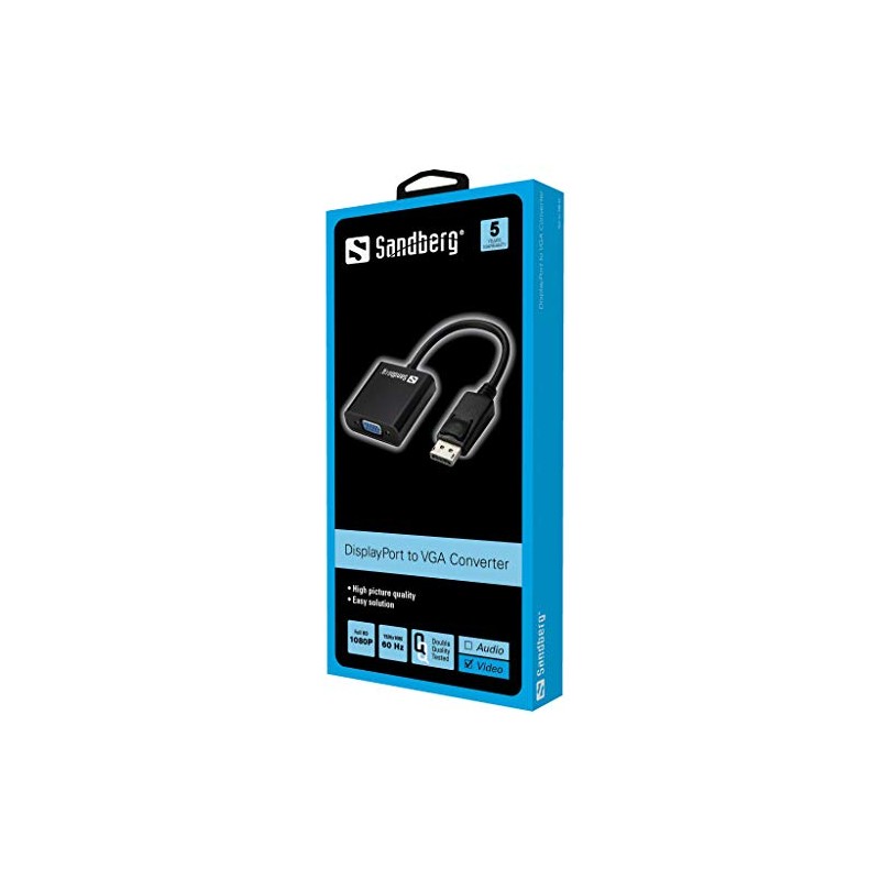 Sandberg Adapter DisplayPort>VGA, DisplayPort to VGA Adapter, Full HD 1920 * 1080 @ 60 Hz DP to VGA Converter, DisplayPort Male to VGA Female Link, Compatible with Lenovo Dell HP ASUS, 20 cm