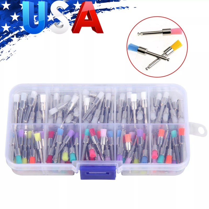 SANDENT 200 Pcs Dental White & Colorful Nylon Latch Flat Polishing Polisher Prophy Brush