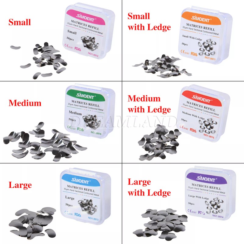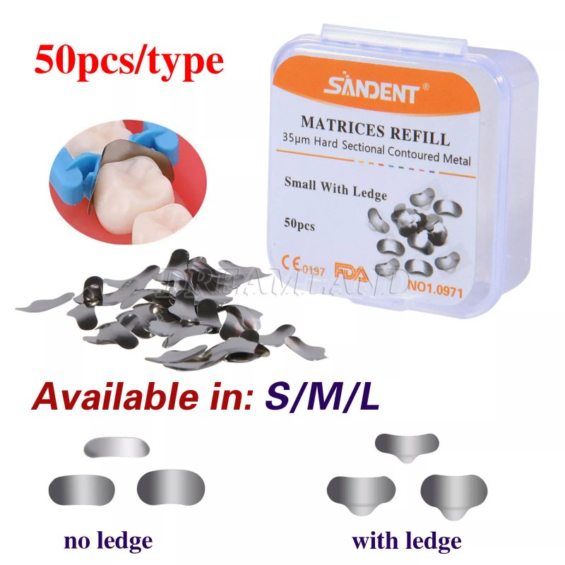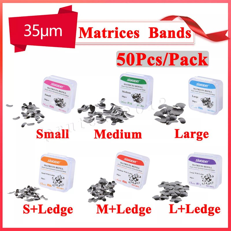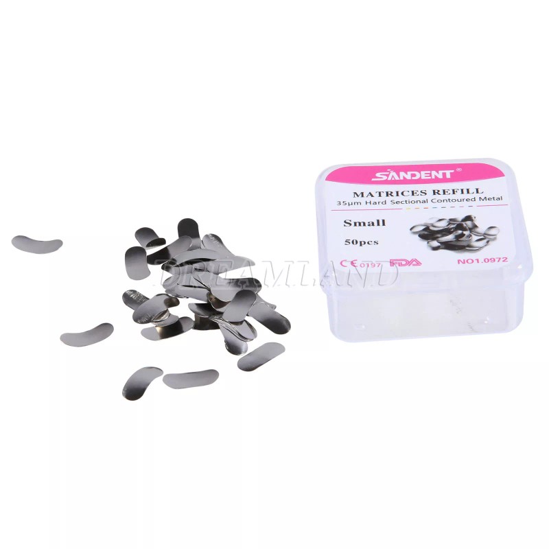 SANDENT 50 Pcs Dental Matrix Sectional Contoured Metal Matrices Bands S/M/L Model 35μm - Small Refill 35μm