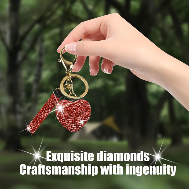 - Stylish and Excellent: With sparkling rhinestones and romantic heart shape, this keychain presents a fashionable and exquisite appearance. Hang it on your car keys, instantly enhance the overall style and show your unique personality and fashion taste. Driving on the road, it is not only an accessory for your car keys, but also a symbol of your unique charm.