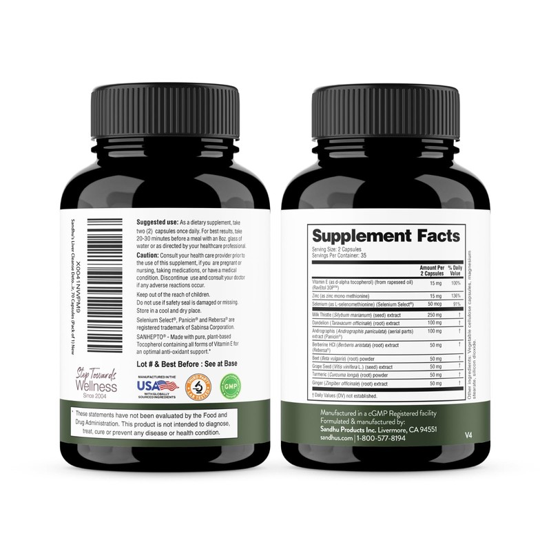 - DOSAGE & SERVINGS: Take 2 capsules daily for optimal results, consistently for at least 3 months, or as recommended by your healthcare provider. Sandhu's Liver Cleanse & Detox contains potent natural Antioxidants along with Vitamin E. One bottle has a supply of 35 days.