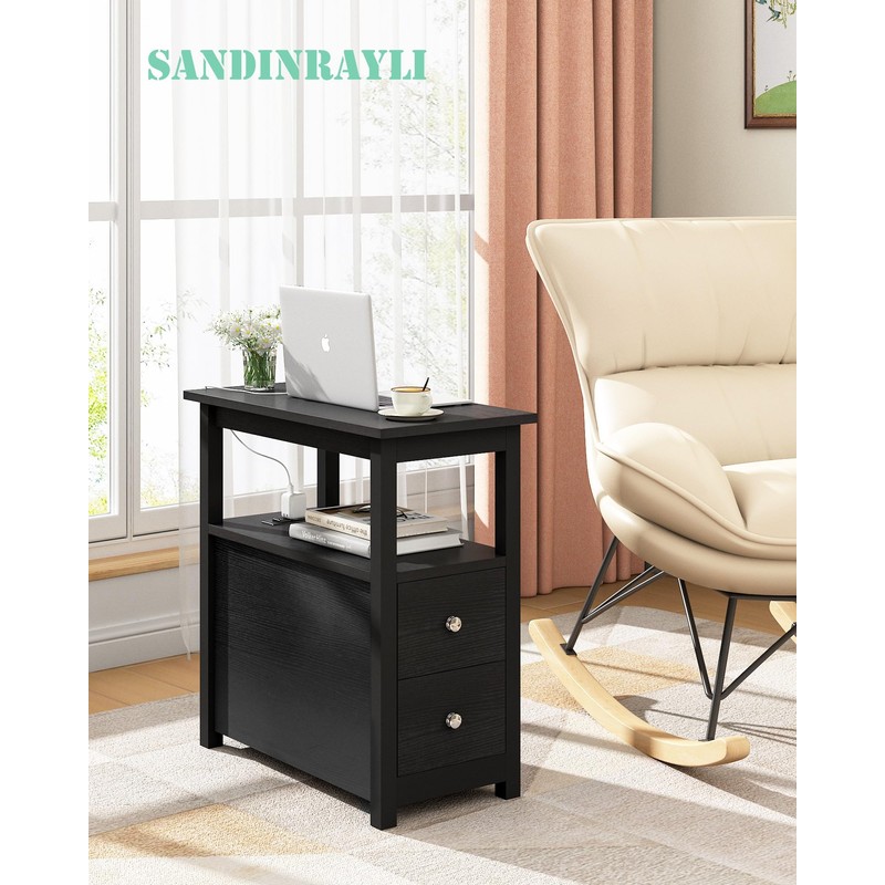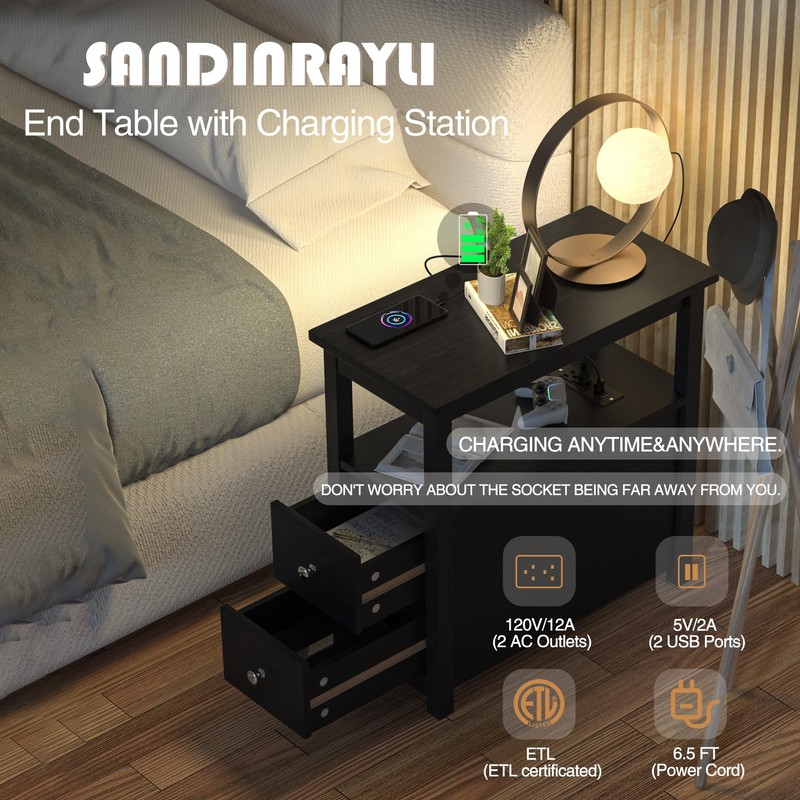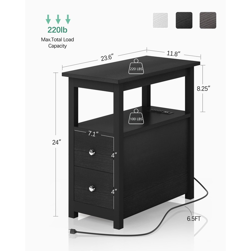 - 【End Table with Charging Station】The second level of the side tables has an ETL-certified power strip, with a 6.5ft long cord, which includes 2 USB ports and 2 standard outlets to charge your multiple electronic devices simultaneously, like your phone, tablet, lamp, etc.