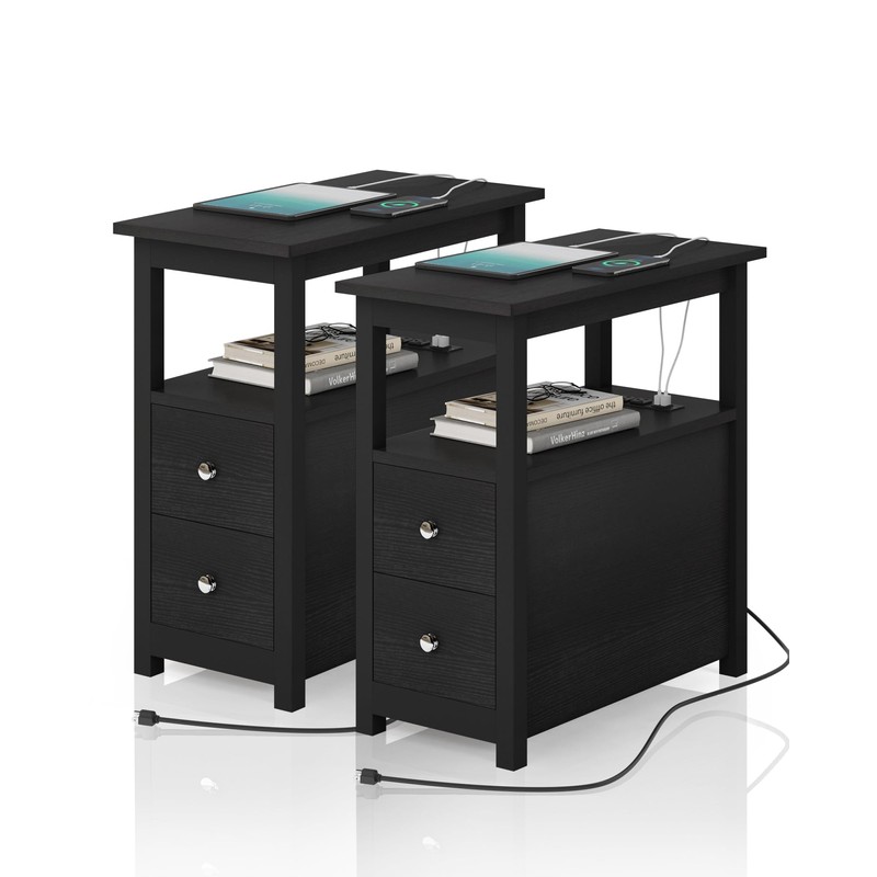 Sandinrayli Bedside Table Set of 2, End Table Black for Living Room, Side Tables with Charging Station, Nightstand with 2 USB Ports and 2 Power Outlets, Wooden Small End Table(Black)