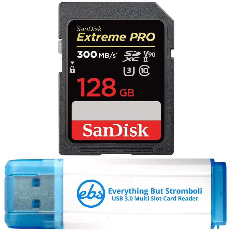 - Bundle includes (1) 128GB SanDisk SD Extreme Pro UHS-II Memory Card and (1) Everything But Stromboli 3.0 SD and Micro (TF) Card Reader (dual slot reader)