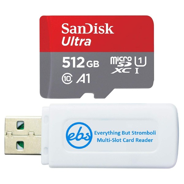 - Bundle with (1) 512GB SanDisk microSD card and (1) Everything But Stromboli Multi-Slot Card Reader - Includes SD, Micro SD (TF), M2, and MS slots for easy transfer