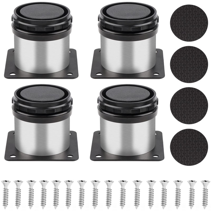 Sandiyago 4 Pcs 5cm Adjustable Furniture Legs, Stainless Steel Heavy Duty Metal Furniture Feet with 16 Pcs Screws, Round Adjustable Leg Cabinet Kitchen Table Leg,Furniture Pads Protector