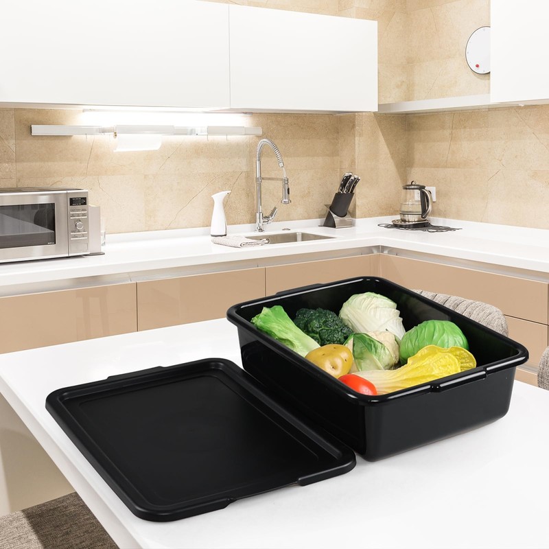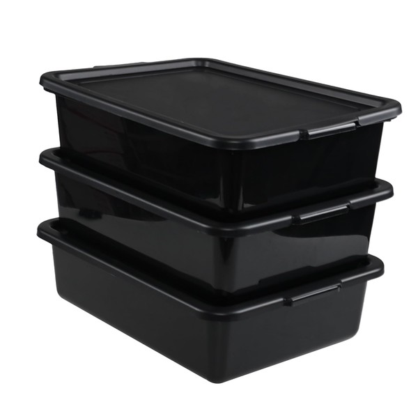 Sandmovie 13 L Plastic Bus Tub with Lids, Restaurant Utility Bus Box, 3 Pack