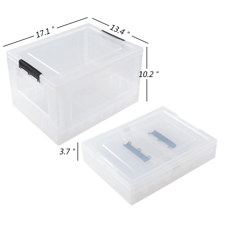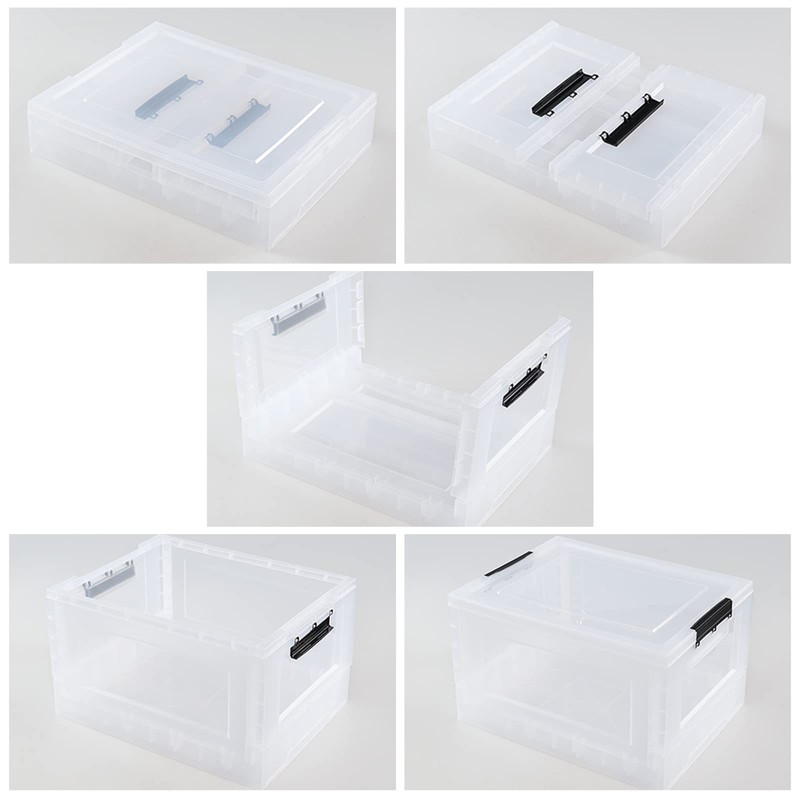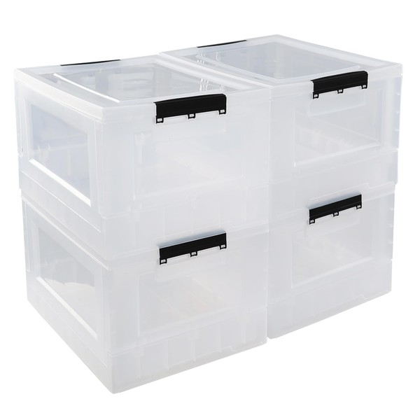 Sandmovie 32 Quart Clear Plastic Folding Storage Bin, Clear Latch Totes with Lids, 4 Pack