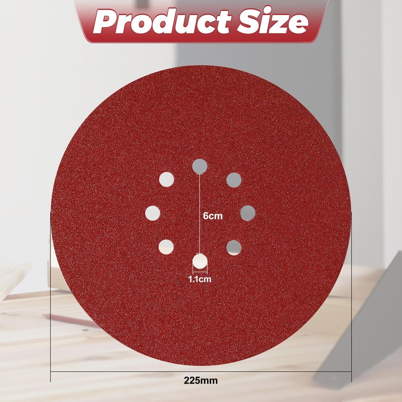 • Premium quality material: the 225 mm sanding discs are made of high-quality aluminium oxide abrasive with special heat treatment for excellent polishing, sharpness and wear resistance, which makes them durable and durable even during long sanding work.