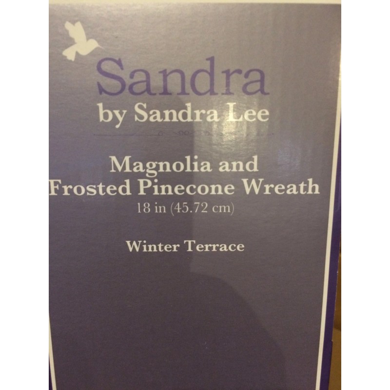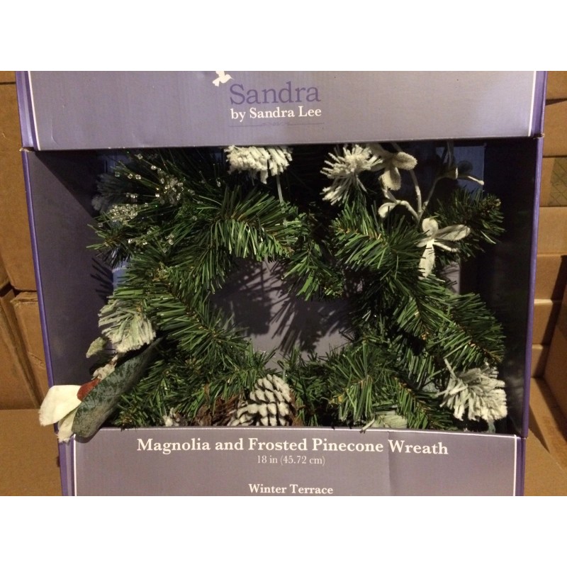 Sandra Lee Christmas Magnolia And Frosted Pinecone Wreath New In Box 18"