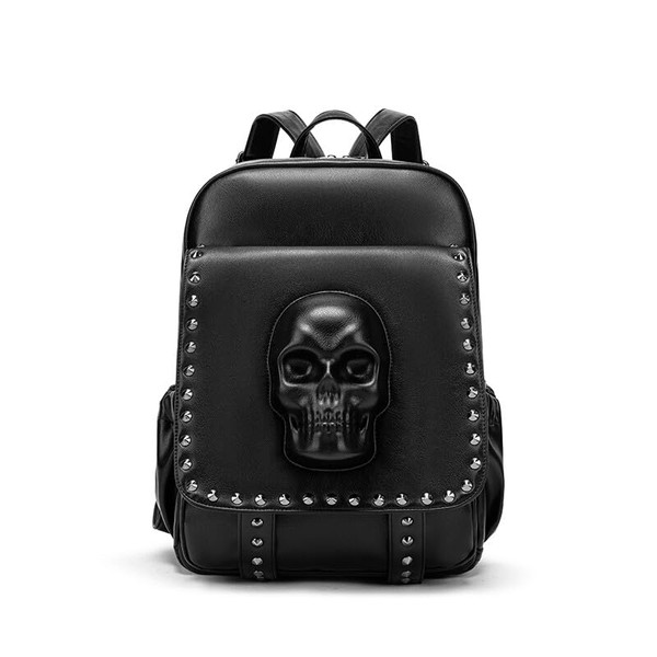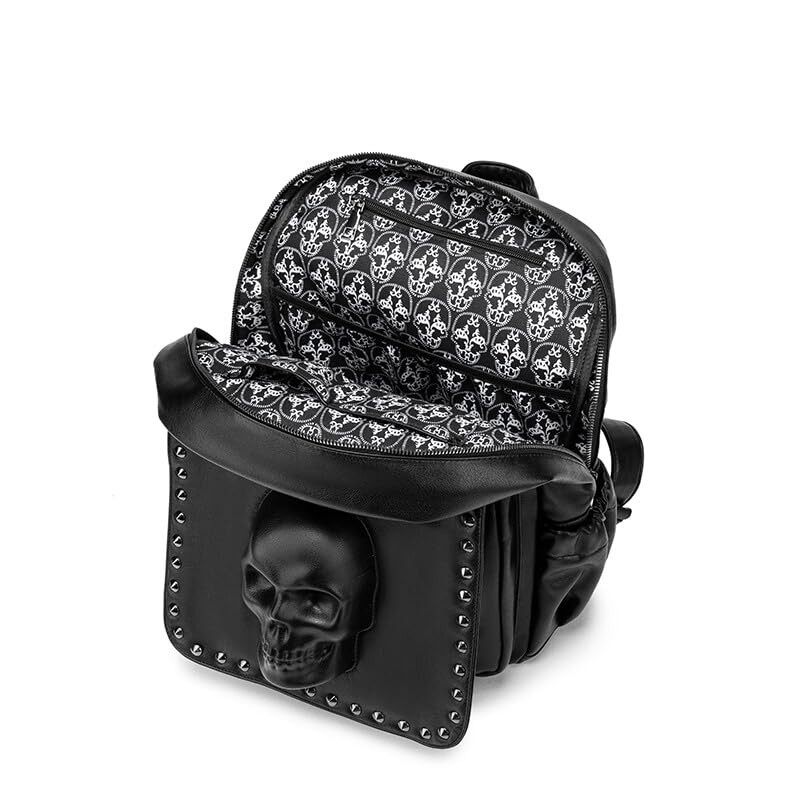 SandraWang Bold Gothic 3D Skull Backpack - PU Leather Bagpack with Anti-Theft Pocket & Metal Studs, Unisex Design for Travel & Daily Use
