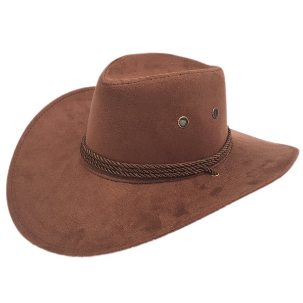 Sandy Ting Men's Outback Faux Felt Wide Brim Western Cowboy Hat (Coffee)