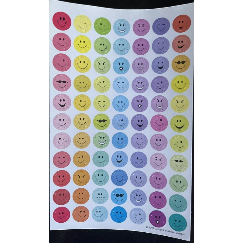 Sandylion Smiley Face Stickers 1 Sheet 1999 Kromekote Partial Bright Colors.