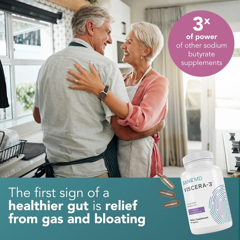 - No more excessive gas and bloating! The first sign of a healthier gut is relief from gas and bloating. With triple the power of other sodium butyrate supplements, that's exactly what you'll get from SANE Viscera-3 POSTbiotics*