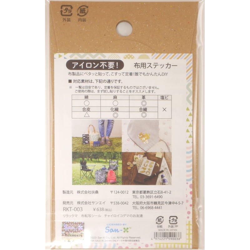 Sanei irodo Rilakkuma Cloth Decal Sticker Chairoikoguma Friends RKT003