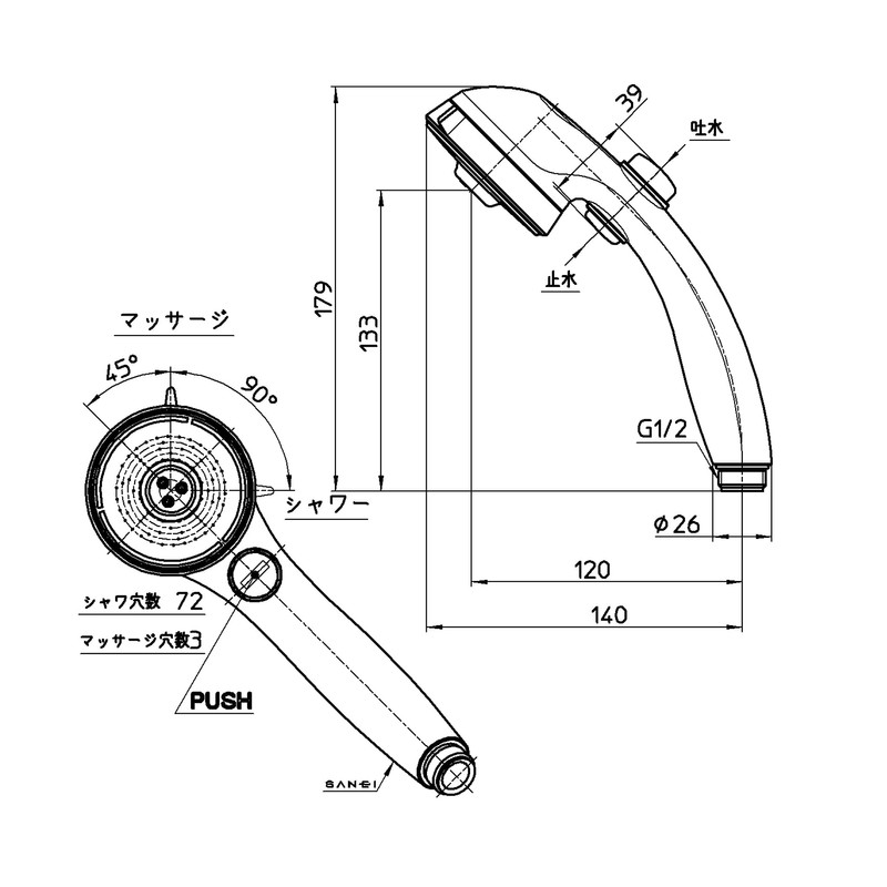 - SANEI Faucet PS3235-80XA-MW2 Massage Stop Shower Head