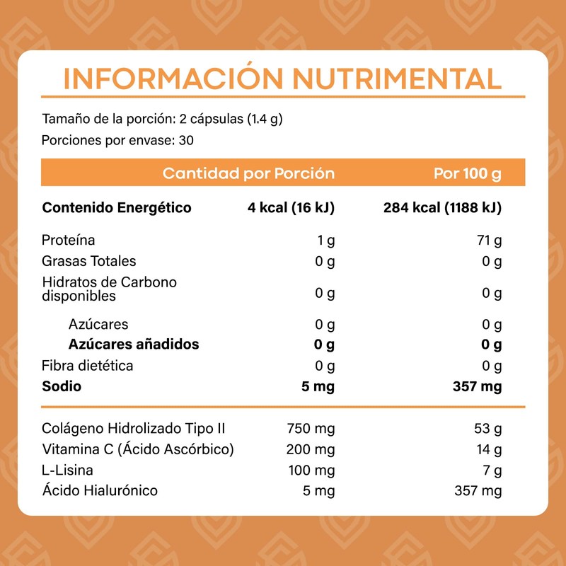 - Colágeno Hidrolizado Tipo II, con Vitamina C, Lisina y Acido Hialurónico
