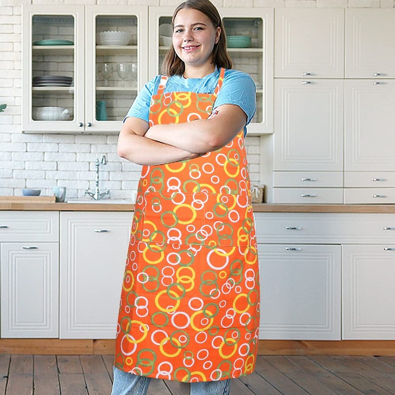 SANFERGE Canvas Plus Size Apron for Women with 2 Pockets, 39 X 38 inch Extra Large XXL Aprons, Orange Circle, 39 X 38 inch