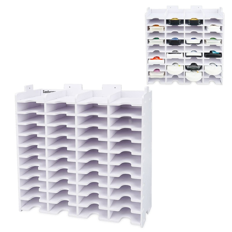 Sanfurney 44 Slots Slim Ink Pad Holder and Stamp Pad Storage Organizer for Ranger or TSUKINEKO Ink Pads Diamond Painting Tray Rack for Crafts Supply, Stackable Wall Mount