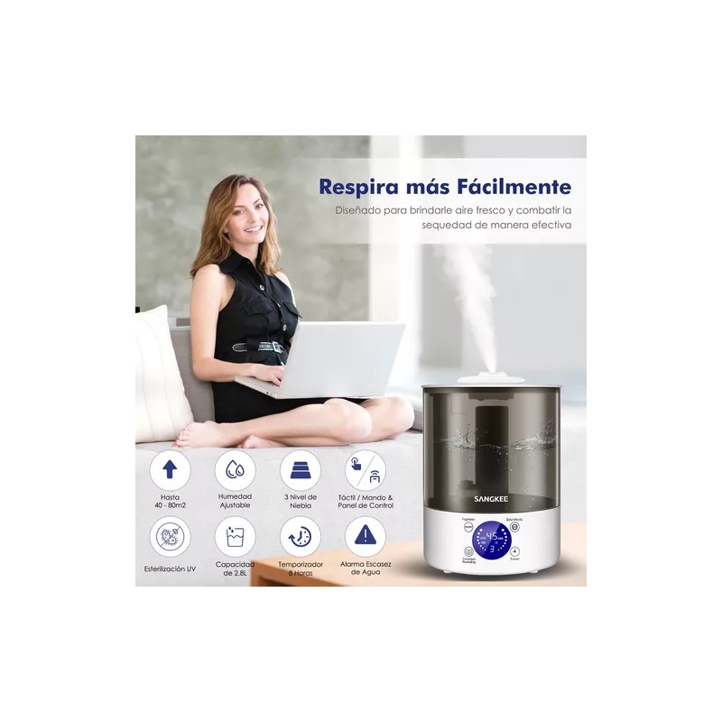 Sangkee Humidificador Aire Ultrasónico, Difusor De Aceite Esencial De 2.8l Con Pantalla Led Y Control Remoto,sincronización De 8 Horas, 3 Modos De Niebla, Apagado Automático, Funcionamiento Silencioso