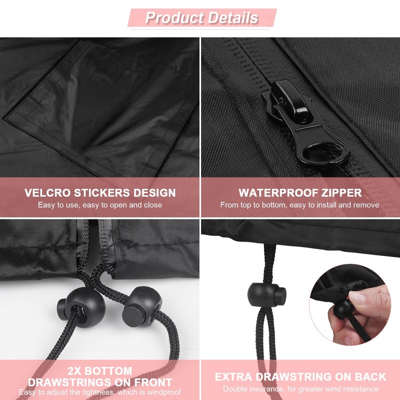 - ►【Easy to use】There is a square opening with Velcro design on the top of the tank cover, and there is also a long zip in the middle for easy installation and removal. The bottom drawstrings can tighten the cover better to prevent it from being blown away by the wind.
