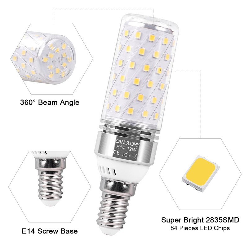 - ?? Energiesparende E14 LED LampenSuper Hell 2er Pack E14 LED Glhbirne, 84 Stck 2835 SMD LED, 12 W LED Lampe idealen ersatz fr 100 W Halogenlampe, 1350 Lumen hohe Helligkeit, Sie sparen bis zu 85% der Stromkosten im Vergleich zu einer vergleichbaren Glhlampe. Kleine Gr??e (Lx ?): 10,7cm x 3cm. Bitte berprfen Sie die Gr??e vor dem Kauf.