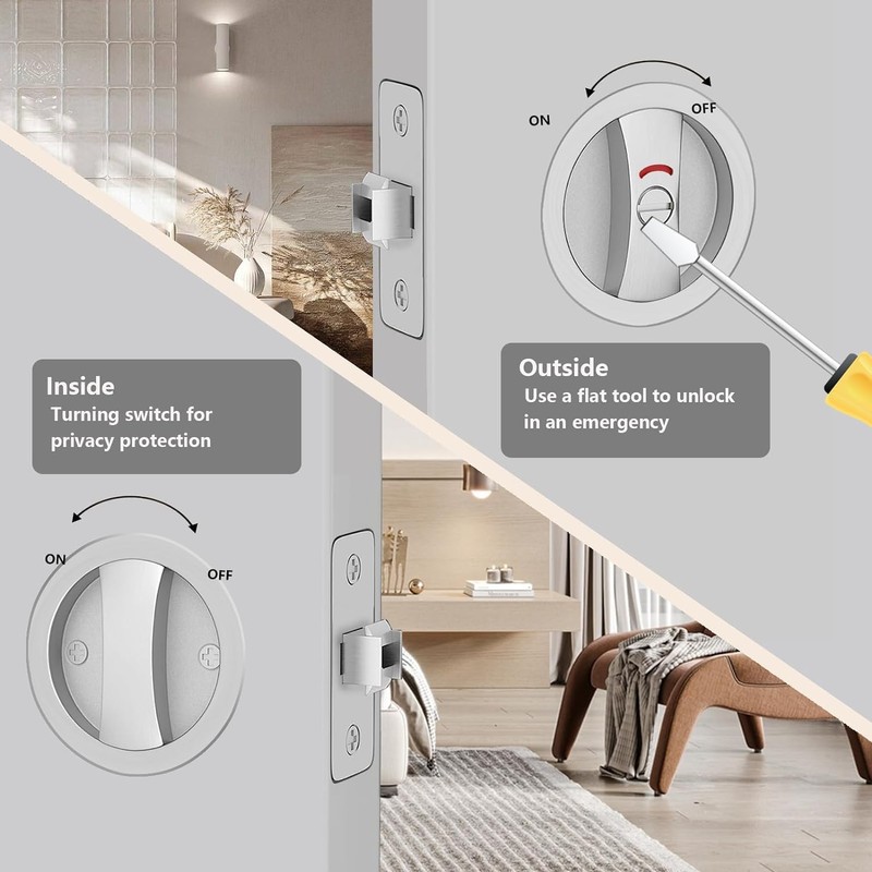 - ✅ 【Excellent Design】Pocket door lock adopts a recessed design, parallel to the door panel, while ensuring the security of the door, we try our best to provide stylish, simple and well-made high-quality pocket door locks that suit your home style;