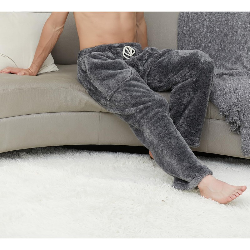SANGTREE Mens Fleece Pajama Pants Pj Pants for Men Thick Plush Fuzzy Sleepwear Sleeping Pants, Gray, Large