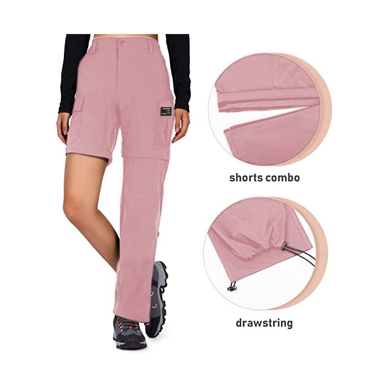SANGTREE Womens Convertible Quick Dry Hiking Cargo Pants Shorts with Multi-Pockets, Light Pikn, S