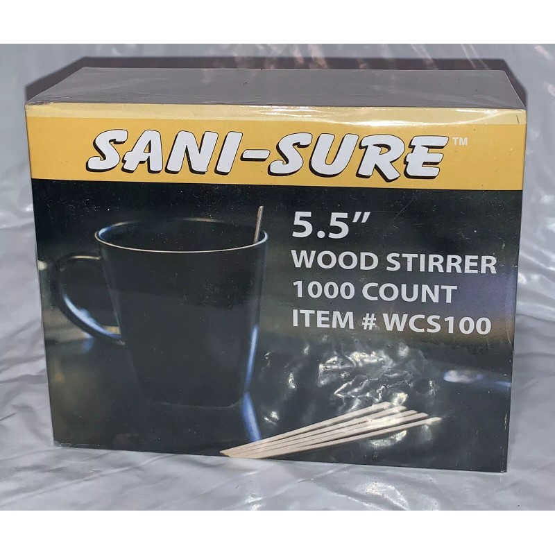 Sani-Sure NEW (1) Box Sani-Sure 5.5'' Wood Stirrer 1000 Count/Box Coffee Stirrer WCS100