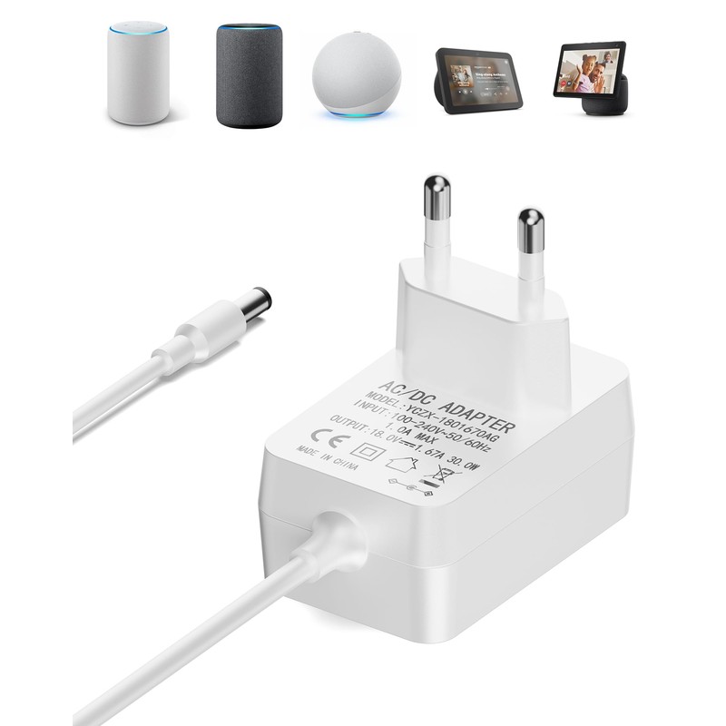 - Powerful and efficient: this 30 W power supply provides a stable and reliable power supply with 18 V 1.67 A output - perfectly matched to the requirements of your Echo devices. Thanks to high-quality components, it works quietly, efficiently and with low heat generation - for smooth operation, even with daily continuous use.