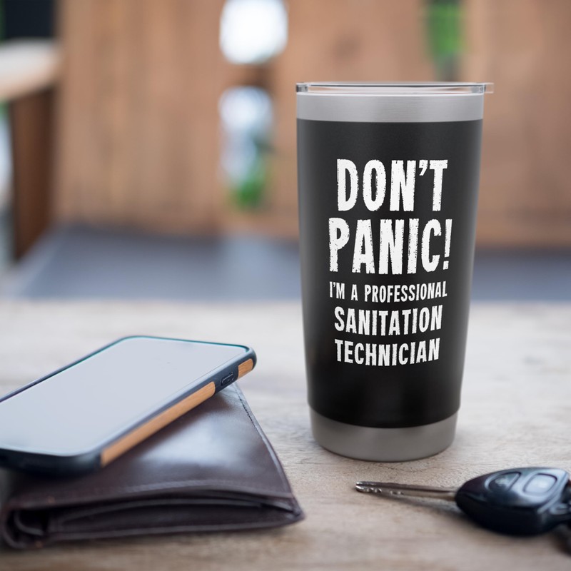 - A funny and unique gift idea for sanitation experts - "Don't Panic! I'm A Professional Sanitation Technician".