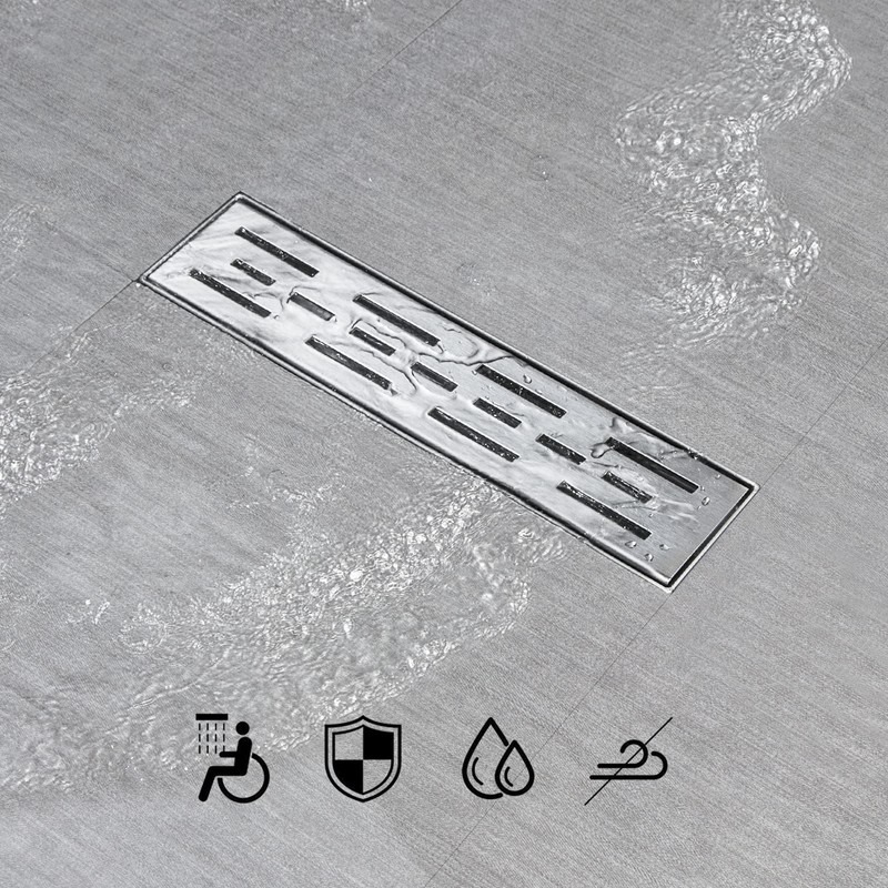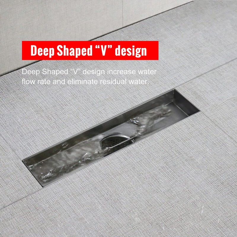 Our linear shower drain can achieve an average of 60 L/min (without filter mesh),DEEP X-shaped Diversion Groove for fast-draining