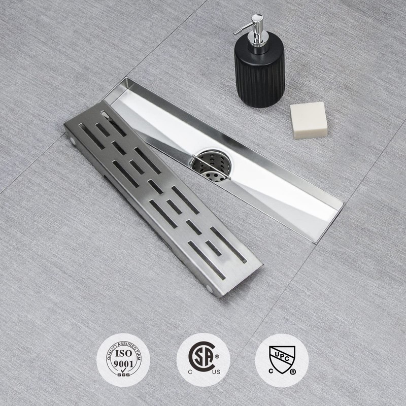 - 【Linear Shower Drain Material】Linear Drain is made of high quality AISI 304 stainless steel,the special production technology to prevent corrosion and rust.It has passed CE and WATERMARK test certification to ensure product safety and functionality.