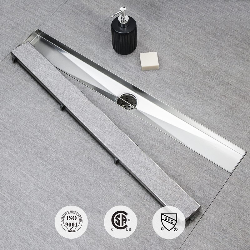 - 【Shower Drain SUS304 Material】Linear Drain is made of high quality AISI 304 stainless steel,the special production technology to prevent corrosion and rust.It has passed CE and WATERMARK test certification to ensure product safety and functionality.