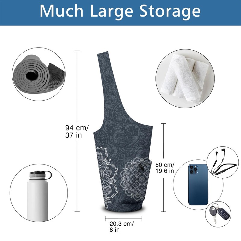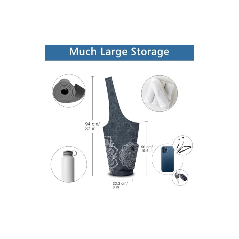 • YOGA BAGS AND CARRIERS FITS ALL YOUR STUFF: Yoga mat bag measures 36.6"x16.1",top 16.6" wide, bottom 7.5" wide,Shoulder straps 18" long,2" wide.Yoga bags for large mat and yoga block.The roomy main pocket is ideal for holding two standard yoga mats 1/4", 1/3", 2/5" thick and 20" long.Or you can also hold yoga blocks,Water bottles,Towels,Bath towels and other gym equipment any combination