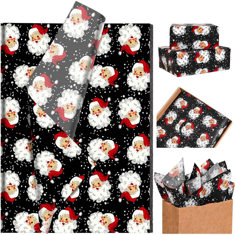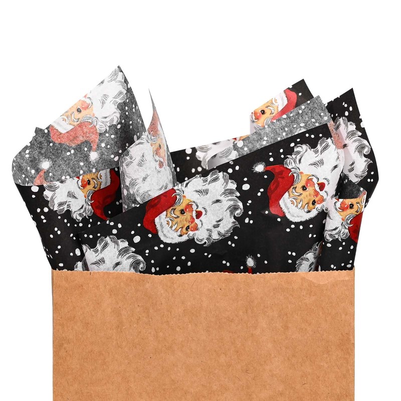 Sanixin 100 Sheets Black Xmas Santa Tissue Paper Santa Snowflake Patterned Christmas Tissue Paper for Gifts Wrapping Boxes for Holiday Season DIY Craft-20 x 14 Inches Per Sheet