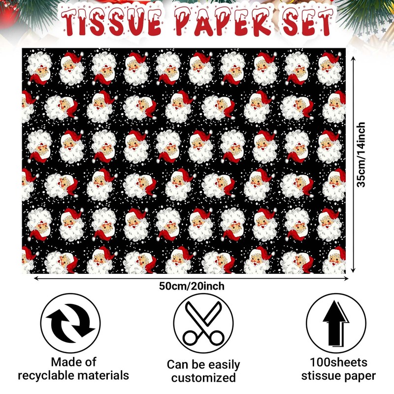 - Package Content:You'll receive 100 sheets of personalized Christmas tissue paper,enough to meet your daily needs;Our Santa tissue paper with shiny color and exquisite pattern,which is suitable for the decoration of the box and highlights the festive atmosphere.