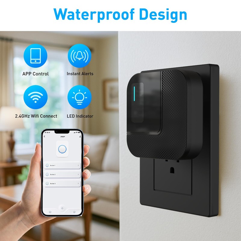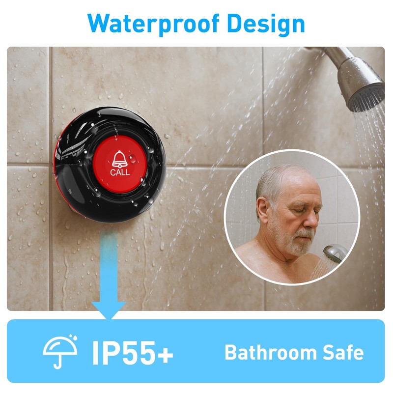- Waterproof Call ButtonSafely install in bathrooms, kitchens, or laundry rooms. Durable and ready for emergencies