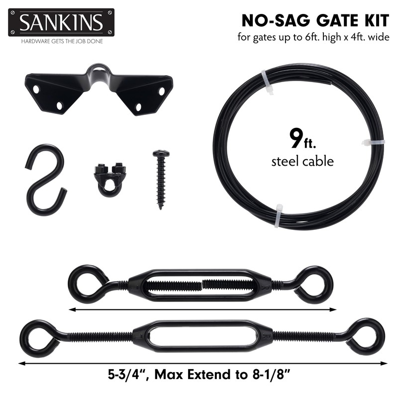 SANKINS anti-Sag gate kit is made of stainless steel with better durability and strength rather than galvanized wire.