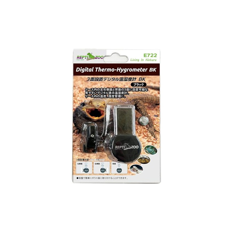 Sanko Shokai REPTIZOO 3 Sided Digital Thermometer/Hygrometer, BK,Black, Reptile, Amphibian, Terrarium