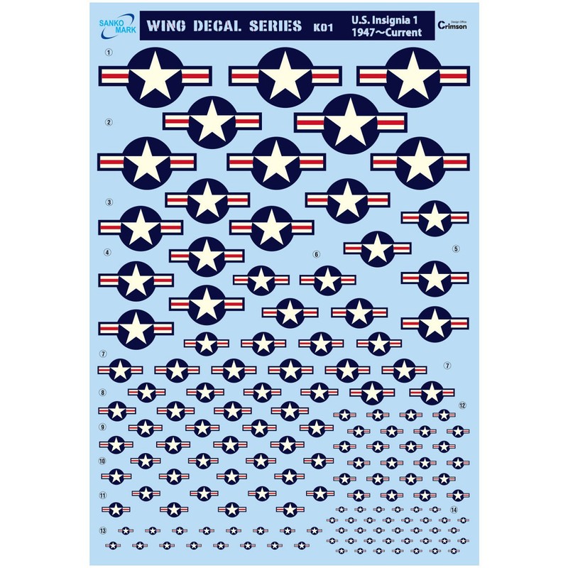SANKOMARK INDUSTRIAL Reptojida Plastic Model Water Transfer U.S.Insignia1 1947 Current K-01 5.3 x 7.77 Inch Reptojida Wing Decal