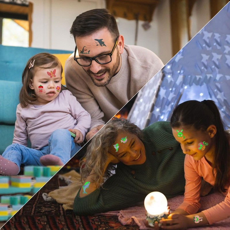 - Occasion: From birthday parties to holidays, these tattoos are a hit! Each pack includes diverse themes (sharks animal insects) to match any event—birthdays, carnivals, or classroom rewards. Safe for face, arms, or legs, they spark creativity and role-playing. Teachers can use them as incentives, while parents love them for travel entertainment. Durable and sweat-resistant, they last for days, making every moment more colorful!