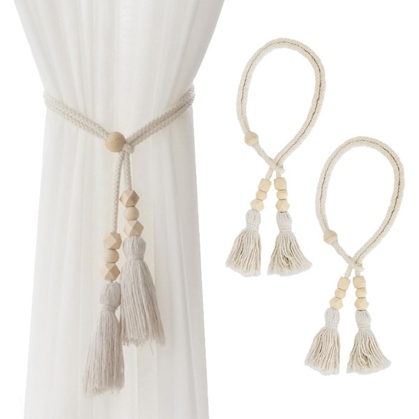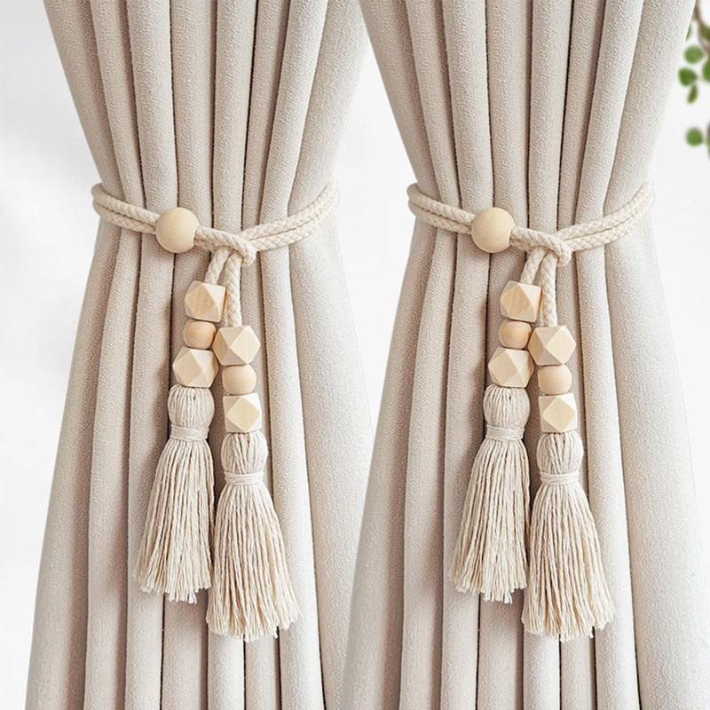 - Simple Design: Hand-Woven rope curtain tiebacks, add more stylish. Simple wooden bead/cube decoration curtain drapes holdbacks make such a difference in the overall look of the curtain, easily update your home decor. It is all-match tieback, whether your home style is American country, Rustic or Mediterranean style, Nordic simplicity.