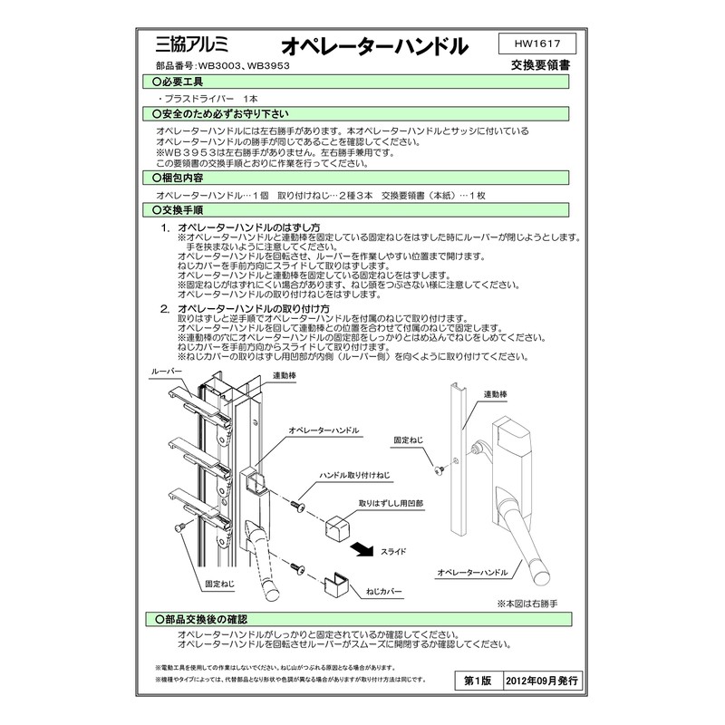 • Contents: Operator handle x 1, screw (truss M5 x 20 x 10) x 2, arm mounting screw x 1, replacement manual (English language not guaranteed)