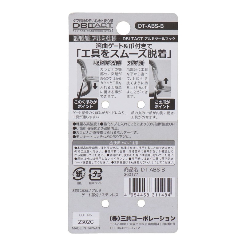 Sankyo Corporation DBLTACT Lightweight Aluminum Tool Hook with Curved Gate x Claw, Single, Matte Black DT-ABS-B