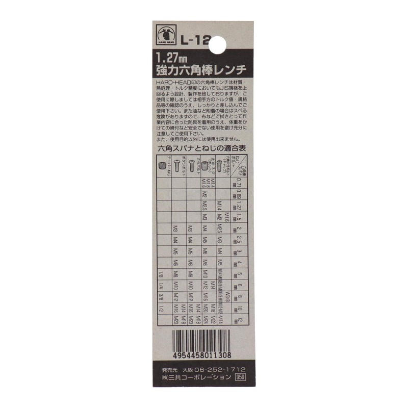 Sankyo Corporation H&H Strong Hex Key Wrench 0.05 inch (1.27 mm) L-12