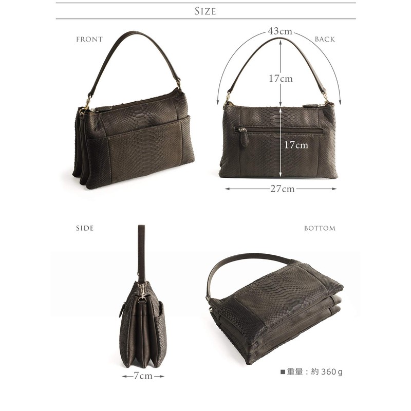 - Size: Width 10.6 inches (27 cm), Height 6.7 inches (17 cm), Bottom Depth 2.8 inches (7 cm), Handle Circumference 16.9 inches (43 cm), Shoulder Belt 45.7 - 50.4 inches (116 - 128 cm), Weight Approx. 12