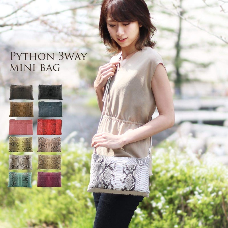 Sankyo Shokai Women's Shoulder Bag, Diamond Python, 3-Way, dark brown
